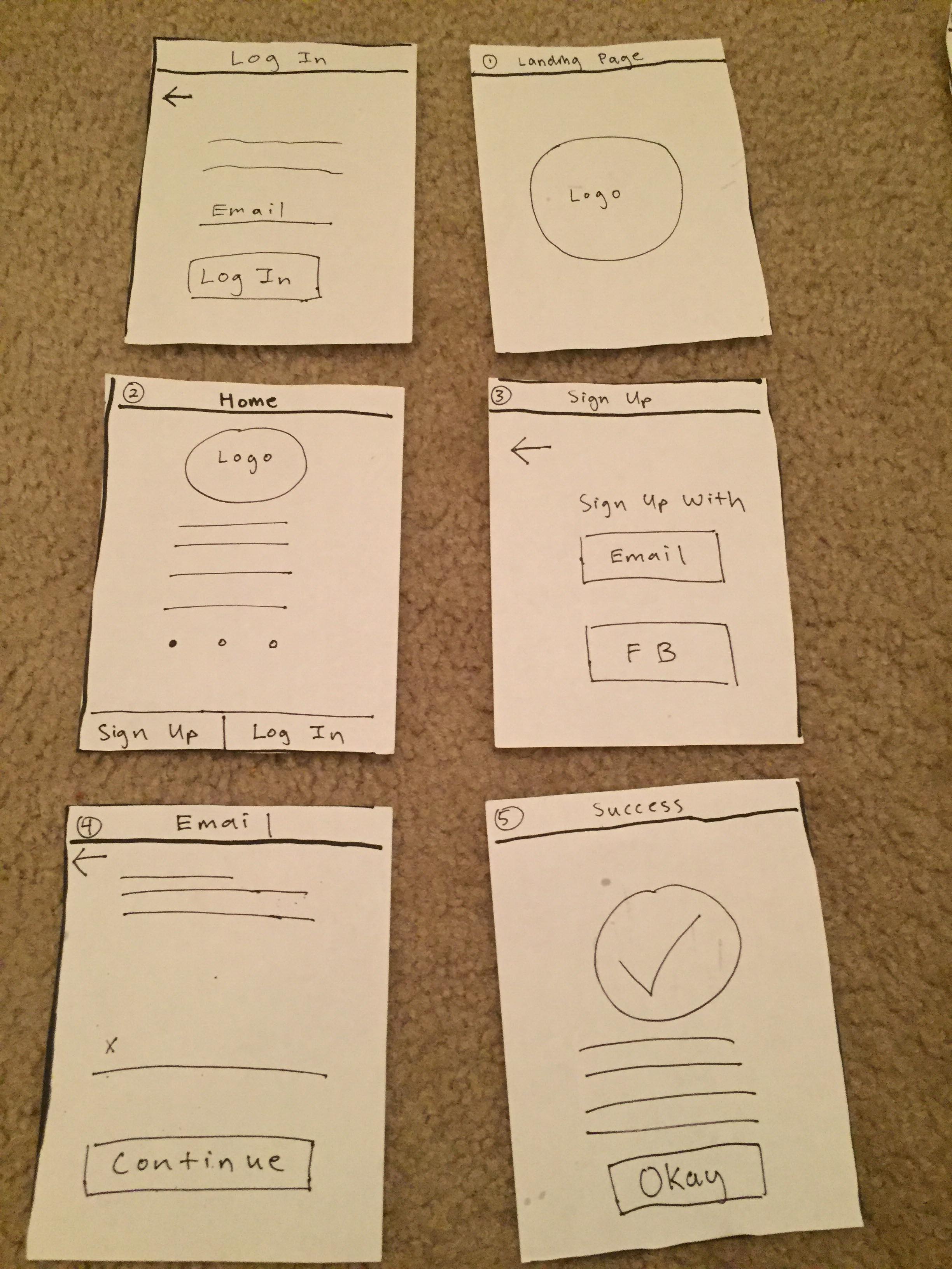 I then made paper prototypes to have users test so we could get more feedback on our app. We would then have other teams run a hueristic evaluation of our prototype so we can create a lofi wireframe with the feedback.
